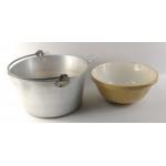 A large GREEN'S mixing bowl approx diameter 30cm, great size for mixing Christmas puddings plus a good, deep jelly pan diameter 35cm diameter and 20cm high