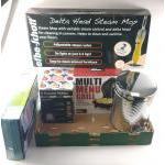 A mixed lot of as new kitchen ware still in original packaging to include a 'YOUR ' Multi-Menu Grill, a RUSSELL HOBBS Dorchester polished kettle , a PIFCO 800 Watt Quartz Heater (PE102), a DELTA HEAD Steam Mop with 500ml water tank capacity and a small 5L pedal bin (26cm high) and a box of key ring torches