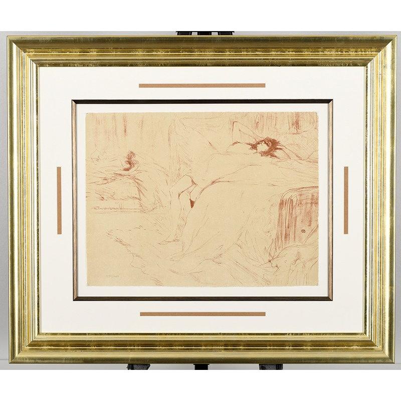 A limited edition lithograph HENRI DE TOULOUSE -LAUTREC titled Femme sur le Dos Lassitude (Reclining Woman). Numbered 1033/1250 with official "Toulouse-Lautrec Circle" embossed stamp (published by Toulouse-Lautrec London). Professionally framed to a high standard and float mounted with mounted corners.. H: 73cm W: 86cm D: 4cm