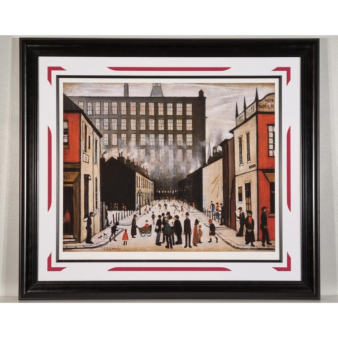 A framed limited edition titled "Street Scene, Pendlebury" by L.S. LOWRY with signed certificate of authenticity (signed by the Master Printer). One from only 95 published worldwide and has been professionally framed in a bespoke frame and mount. It will be supplied with a replacement valuation for £1700 (free of charge). Mint condition. Like the Post-Impressionists, Lowry was interested in recording the nuances of everyday life, basing his work on observations of the world around him. Inspired by the industrial scenes in his hometown, Lowry would stop and sketch during the day then develop a painting such as Street Scene at home. His direct and distinctive style led art critic Jonathan Jones to call Lowry a "modern primitive" to be ranked alongside such artists as Henri Rousseau. A fan of its stiff consistency, Lowry painted with oil paints all of his life, using the paint straight from the tube. Just as Lowry was fascinated by capturing the quotidian, he was also quite elemental in his choice of materials. "I am a simple man", Lowry once said. "I use simple materials: Ivory Black, Vermilion, Prussian Blue, Yellow Ochre, Flake White and no medium." Touches of this choice palette are visible in Street Scene, bringing the scene's realism to life to vivid, yet modest effect.. H: 94cm W: 107cm D: 4cm