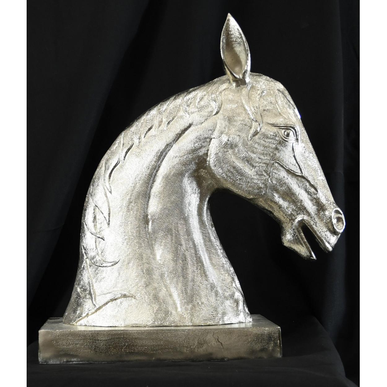 A very large cast horse head on base made from aluminium. Very highly hand polished. A fabulous piece for any equestrian lover!. H: 61cm W: 41cm D: 26cm