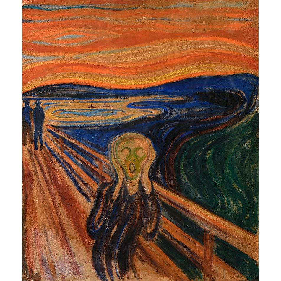 This limited edition print of "The Scream" by EDVARD MUNCH was published as an edition of only 85 Worldwide making it a very rare edition. Supplied with the certificate of authenticity signed by the Master Printer. In special bespoke frame and mounted. Note: supplied (free of charge) with replacement valuation certificate for £2000. The Scream is the popular name given to each of four versions of a composition, created as both paintings and pastels, by the Expressionist artist Edvard Munch between 1893 and 1910. Der Schrei der Natur (The Scream of Nature) is the title Munch gave to these works, all of which show a figure with an agonized expression against a landscape with a tumultuous orange sky. This was the fourth version which was done in pastel and completed in 1895. In 2012 it was sold for $119,922,600 at Sotheby's Impressionist and Modern art auction to financier Leon Black. In his diary in an entry headed, Nice 22 January 1892, Munch described his inspiration for the image: One evening I was walking along a path, the city was on one side and the fjord below. I felt tired and ill. I stopped and looked out over the fjord the sun was setting, and the clouds turning blood red. I sensed a scream passing through nature; it seemed to me that I heard the scream. I painted this picture, painted the clouds as actual blood. The colour shrieked. This became The Scream.. H: 100cm W: 75cm D: 5cm