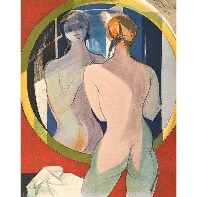 A lithograph in colours by CAMILLE HILAIRE (1916-2004) Nude with mirror signed bottom right and is number 66 from 120 published. Professionally mounted ready to frame.. H: 78cm W: 63cm D: 1cm