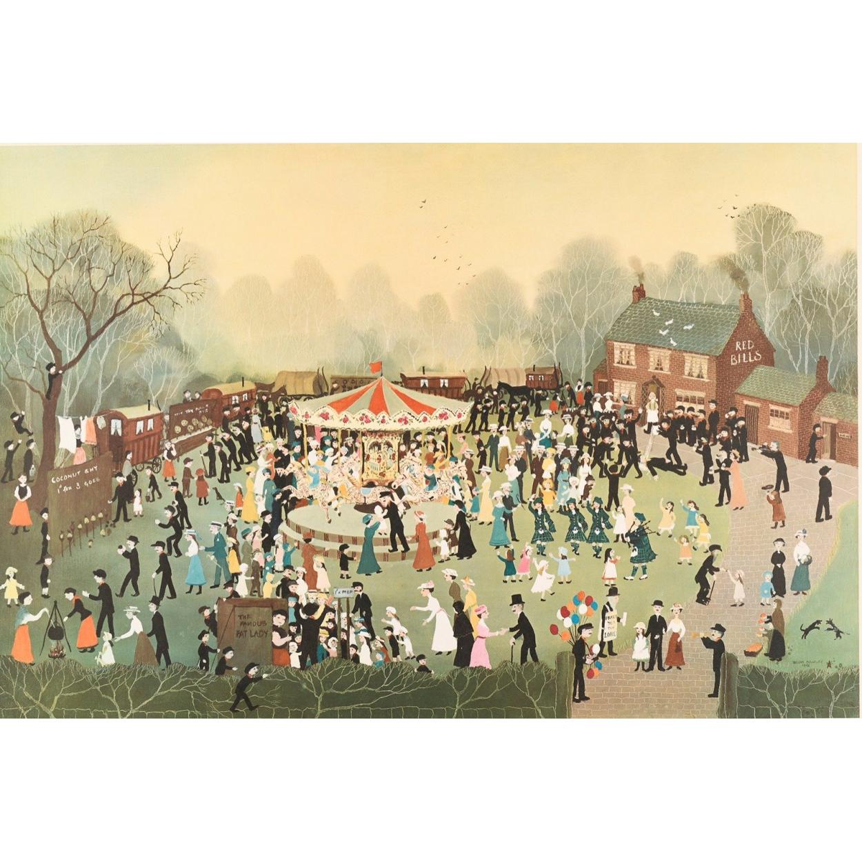 A signed limited edition by the late HELEN BRADLEY (1900-1979) "The Fair at Daisy Nook". H: 73cm W: 97cm D: 2cm
