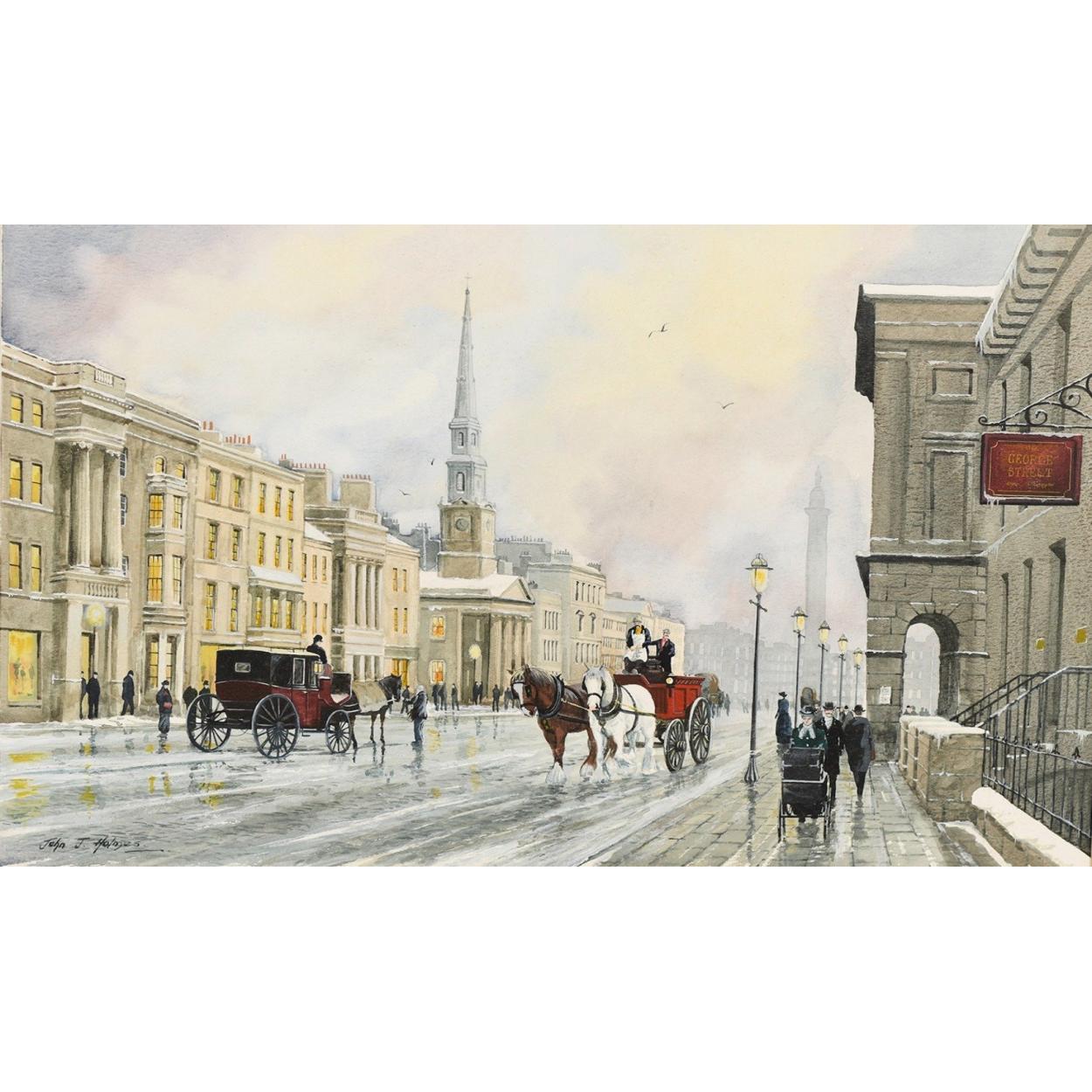 This is an early fabulous original watercolour of George Street in Edinburgh by the highly respected artist JOHN J HOLMES. This is very fine work and the detail is superb depicting Edinburgh in its earlier days. A chance to obtain an original from this great artist. Frame has several cracks with age.. H: 59cm W: 73cm D: 6cm