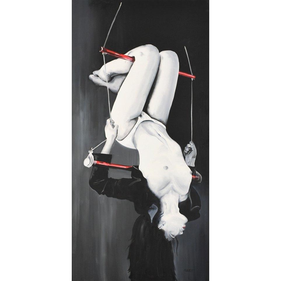 A striking original painting on canvas by MIRELLA BITETTI of a girl posing on bed. Canvas on boxed stretcher ready to hang. Signed on the reverse by the artist. This lot is supplied with a replacement valuation for £1600 (free of charge). Mirella Bitetti was born in 1963 and was largely inspired by the 1980s. The 1980s were an era of growing global capitalism, political upheaval, worldwide mass media, wealth discrepancies and distinctive music and fashion, characterised by hip hop and electronic pop music. This had a heavy impact on the generation of artists growing up during this time. The fall of the Berlin Wall at the end of the 1980s signified the end of the Cold War, yet the era was also distinguished by the African Famine. During this time prominent art movements included Neo Geo, The Pictures Generation and Neo-Expressionism, which took a strong hold in Germany, France and Italy. Artists such as Anselm Kiefer, Jorg Immendorf, Enzo Cucchi, Francesco Clemente and Julian Schnabel were key artists working during this period, alongside Jean-Michel Basquiat, Keith Haring and Kenny Scharf, who established the street art and graffiti movements, which quickly gained recognition.. H: 100cm W: 80cm D: 4cm