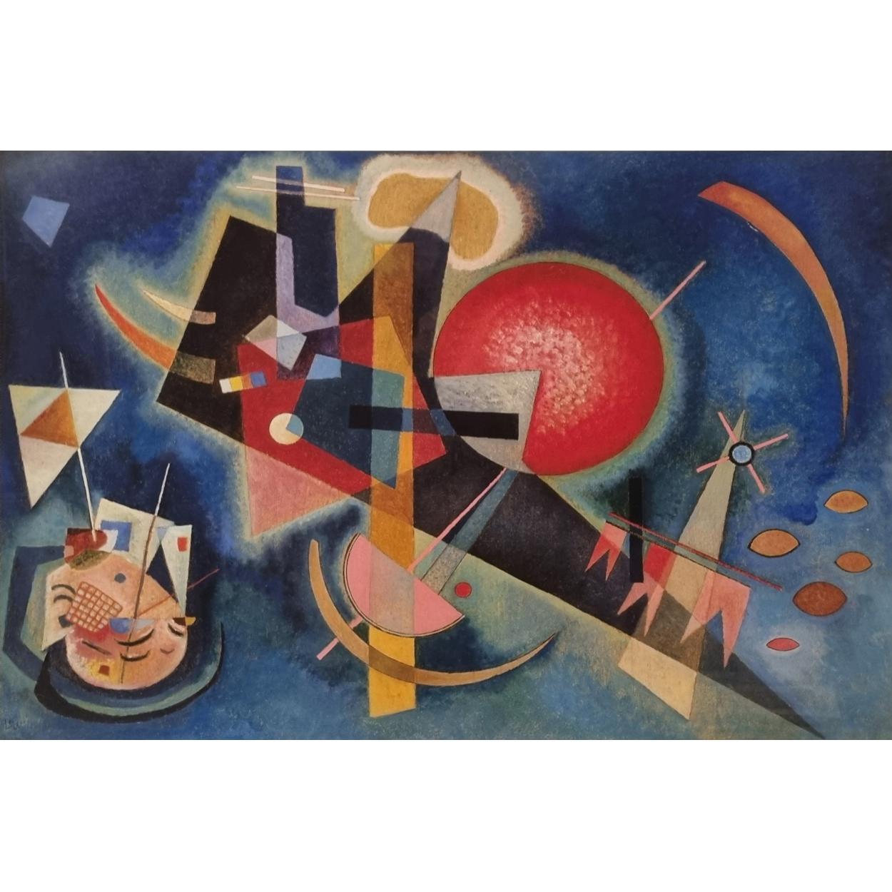 This WASSILY KANDINSKY limited edition titled "In Blue, 1925" was published as a numbered edition of only 75 Worldwide of which this print is one from the edition. Complete with a certificate of authenticity signed by the "Master Printer". Each print in this edition has been hand sorted and fully inspected by the Master Printer. Professionally framed to a high standard in a bespoke frame and art mounted. Note: supplied with replacement valuation certificate for £1800 along with biographical details on the artist (free of charge). Condition is excellent. This work was produced by the artist during his Bauhaus period in Germany when he taught basic design and advanced colour theory and where he also conducted painting classes. His examination of the effects of forces on straight lines led to his contrasting tones on curved and angled lines and you might describe this work as a geometric abstraction with the circle, the half circle, the curves and the straight lines. Kandinsky was also influenced by Gestalt psychological research which had an influence on him in addition to his colour theory. The Gestalt effect is the capability of the brain to generate complete forms, particularly about the visual recognition of global figures instead of just collections of more straightforward and separate elements such as points, lines and curves.. H: 109cm W: 137cm D: 4cm
