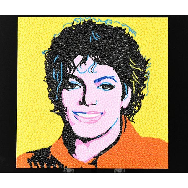 A very unusual contemporary mixed media painting of MICHAEL JACKSON. The painting is on a boxed stretcher so is ready to hang. Signed on the reverse by the Chinese artist.. H: 80cm W: 80cm D: 3cm