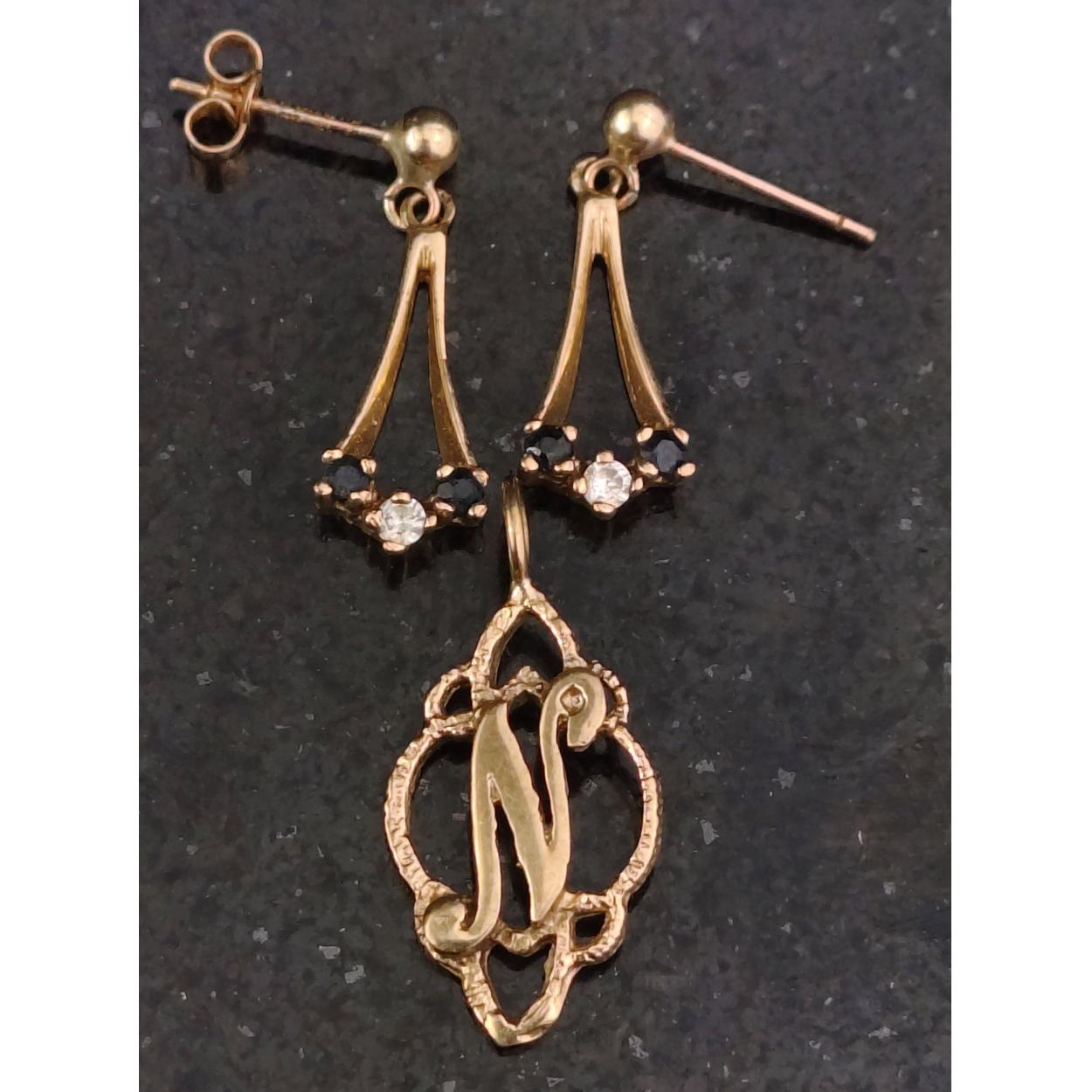 A pair of stamped 9k earrings with blue and white stones, gross weight 1.19g approx - with a 375 stamped pendant weight .90g approx