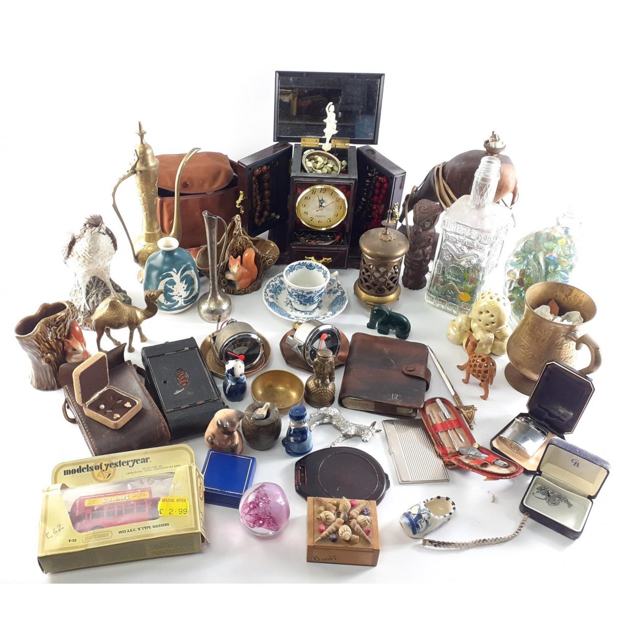 A mixed lot of nice decorative items to include two carriage style clocks, flatware and other decorative items.
