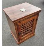 Handy small desktop shelved, pierced fronted cabinet. 35cm x 26cm x 16cm approx. Handy and stylish.