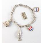 Small jewellery lot consisting of amber coloured beads, pearls, 925 stamped chain, brooches, bangle, a Spanish war medallion on chain.