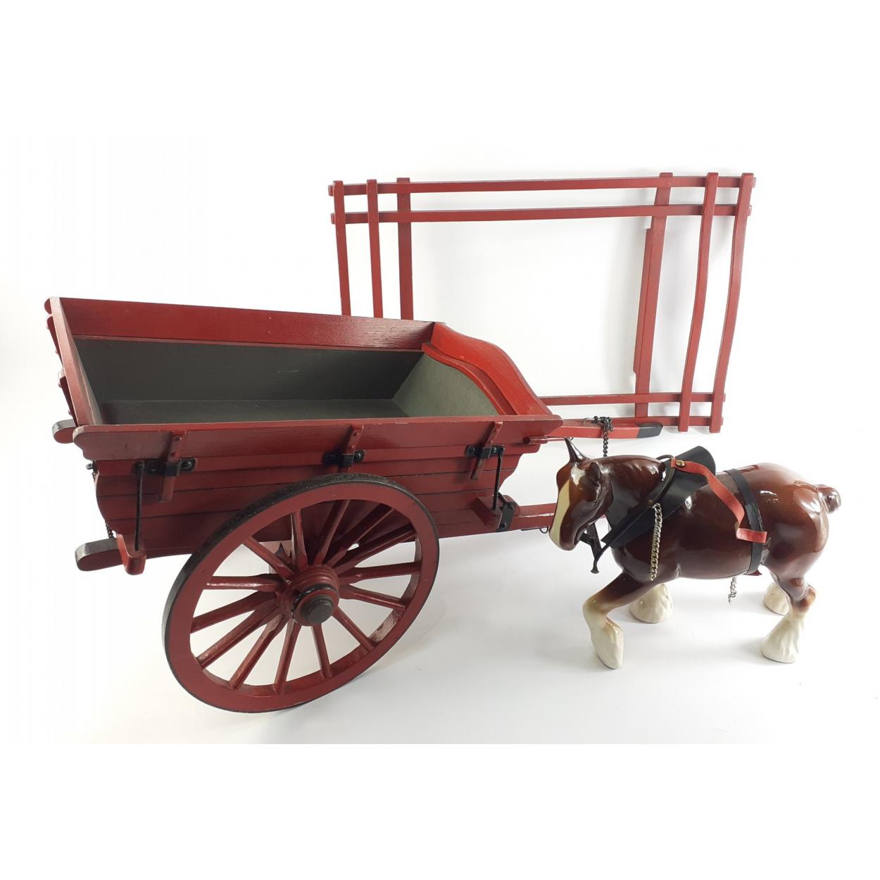 A ceramic CARTHORSE ornament with wooden two wheeled gig / trap. The whole measuring 70cm approx.