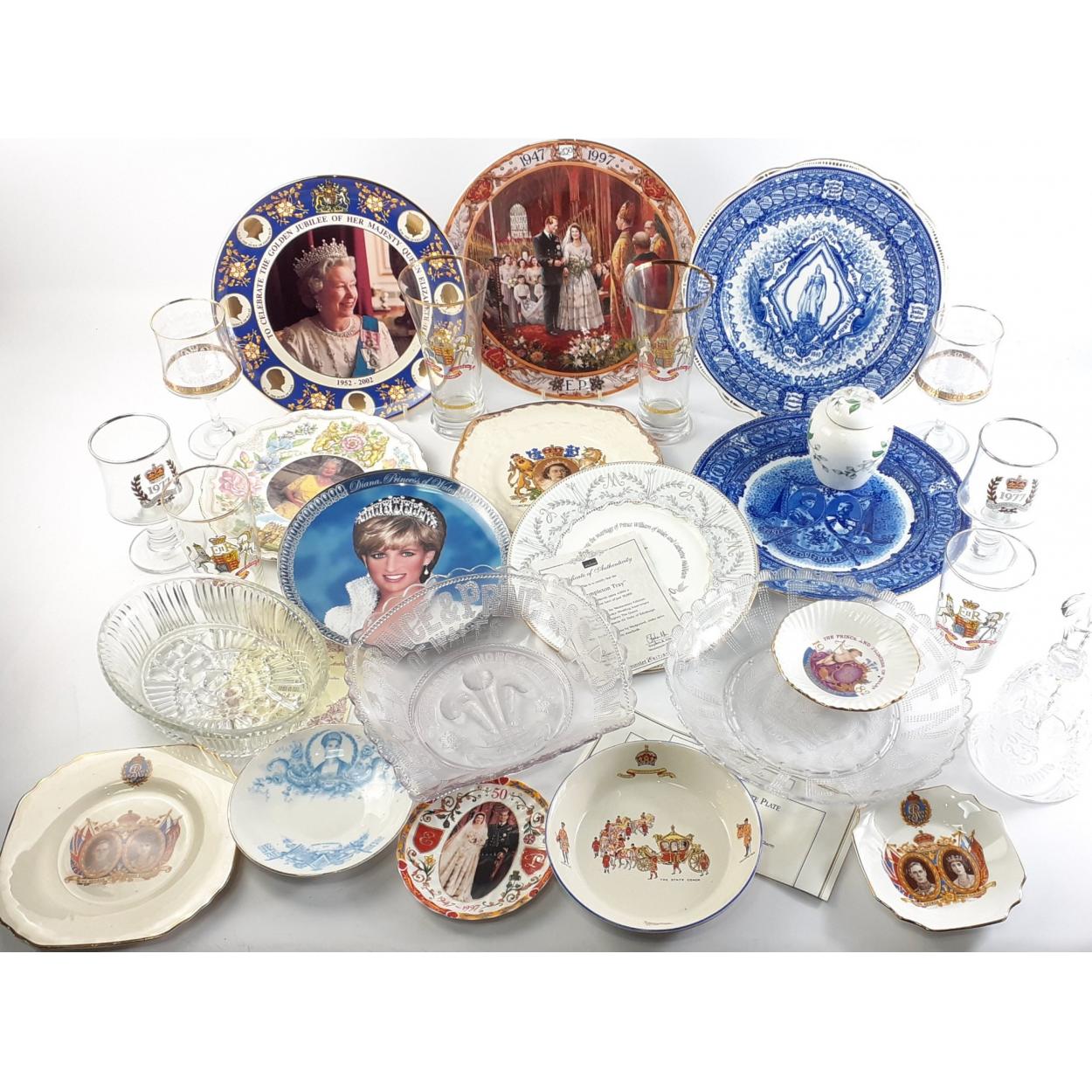 A mixed lot of ROYAL COMMEMORATIVE plates, glassware and others.