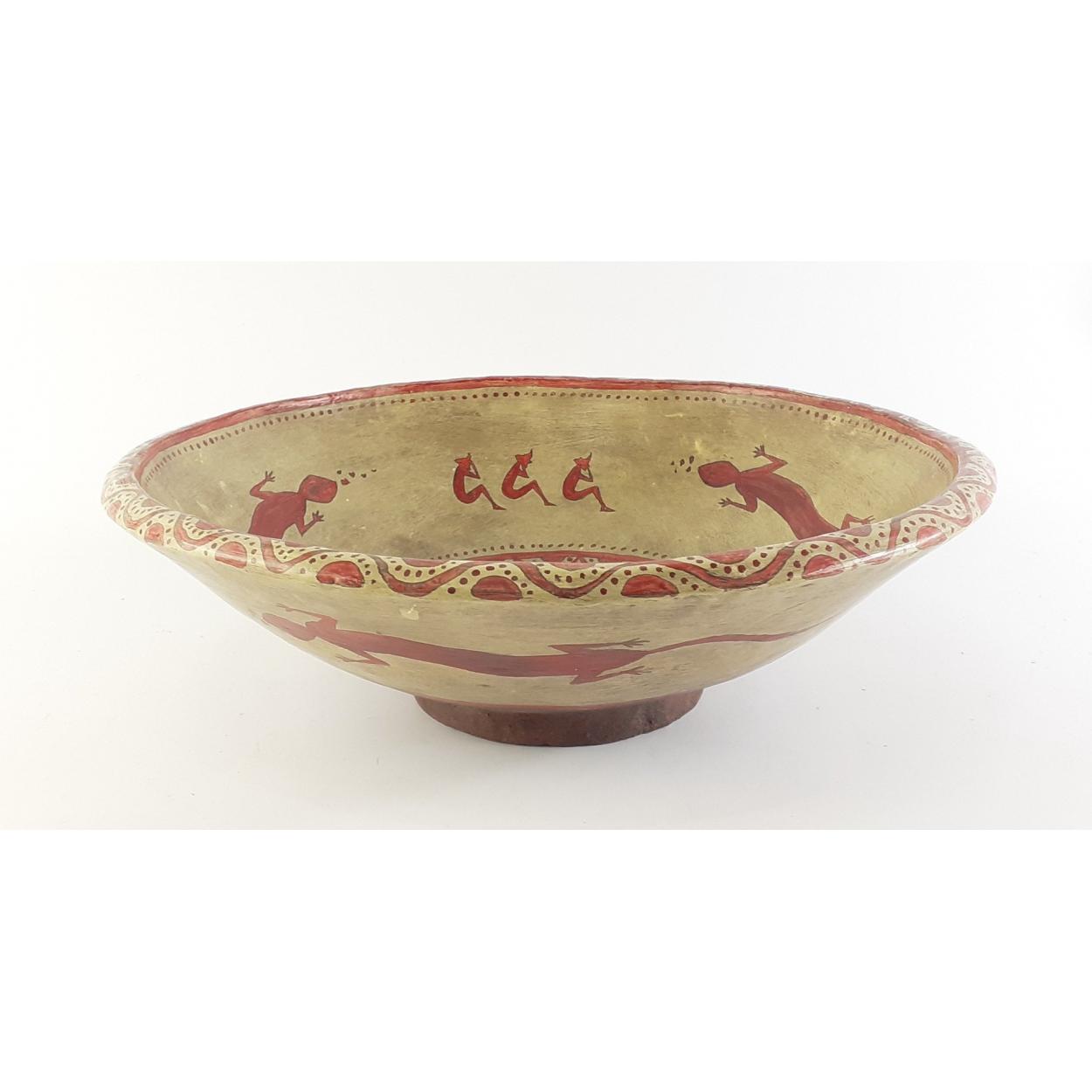 A Central or South American clay bowl. 30cm across. Excellent figural decoration. A nice tactile piece.