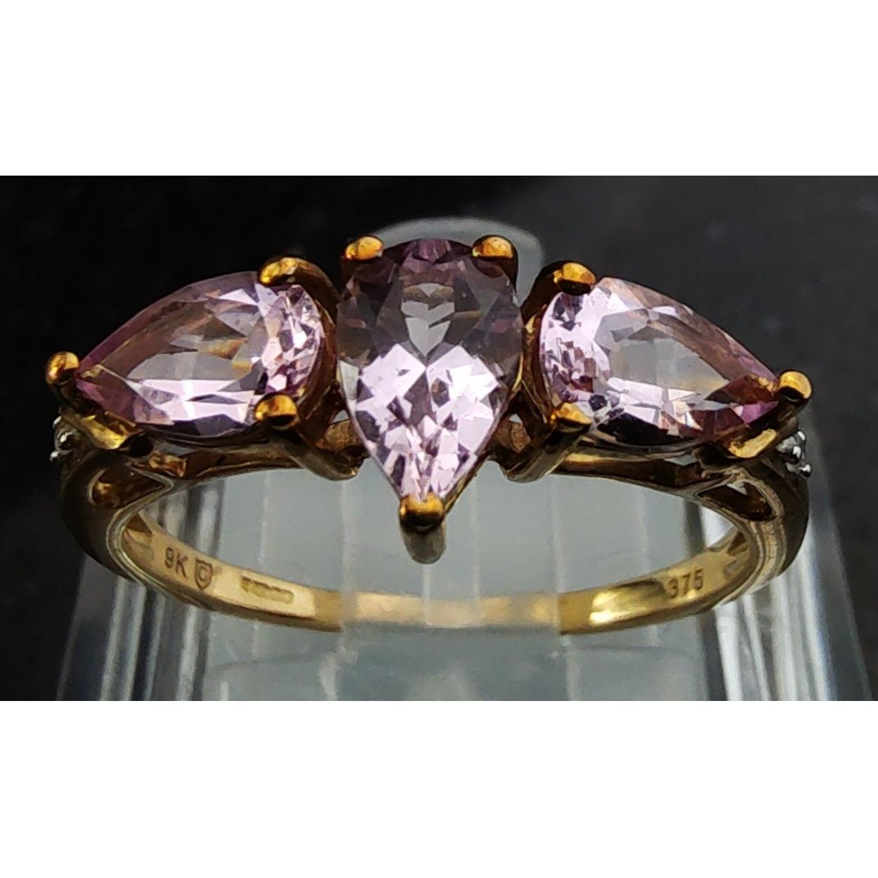 A 9k Birmingham hallmarked stamped rose coloured stone with surrounding zircon stones 1(.45cts) ring - size N/M - limited edition one of 30 pieces made - gross weight 2.12g gross - comes with its authenticity certificate card