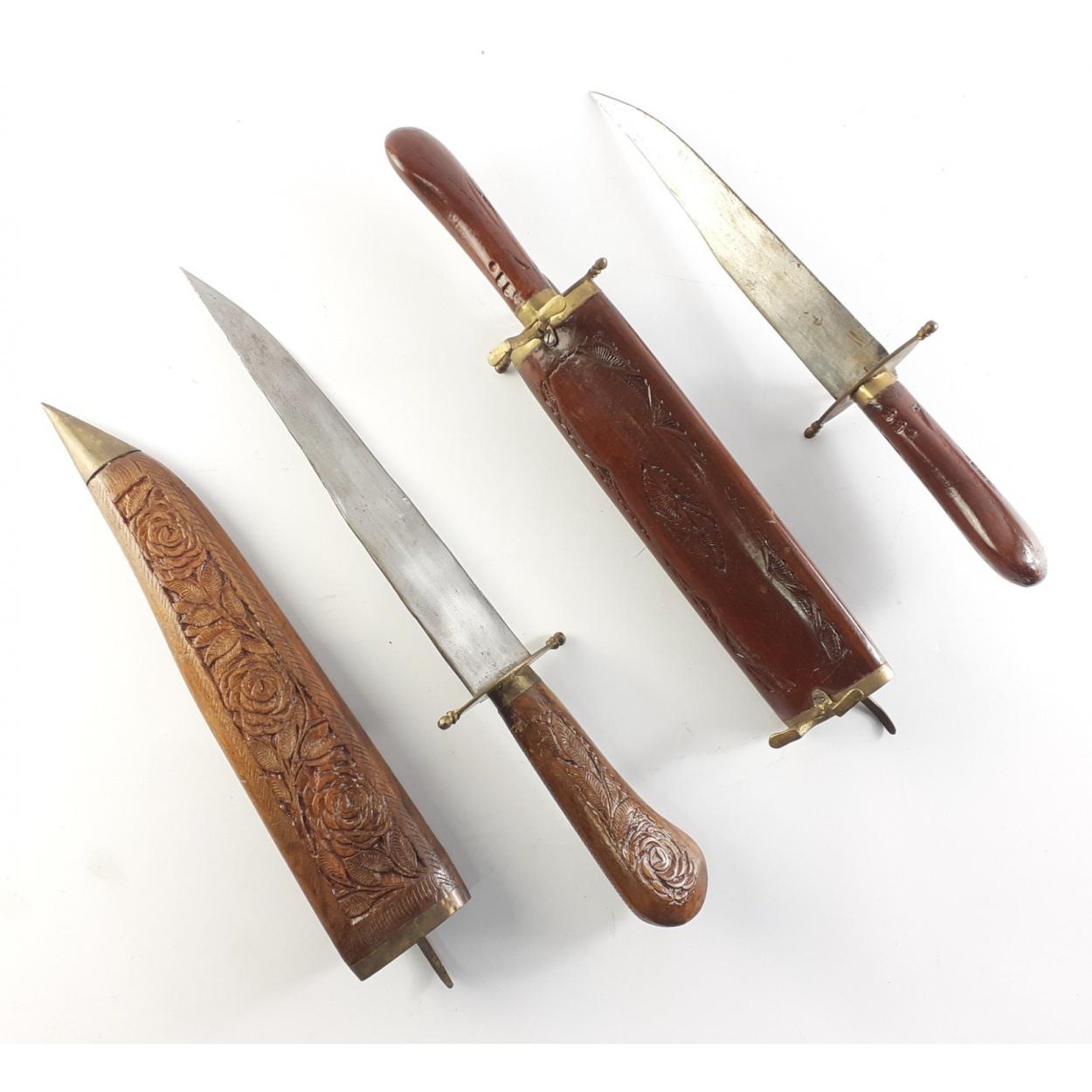 Two Indian native daggers in sheaths. One interesting double sheathed knife and one other. Interesting pair.