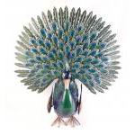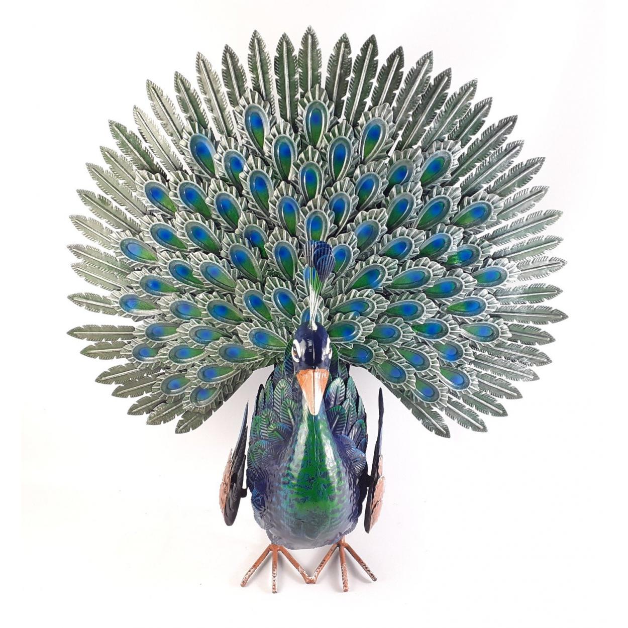 A large ornamental metal peacock standing an impressive 66cm tall approx with a wingspan of 63cm. Lovely colourful chap in great condition.
