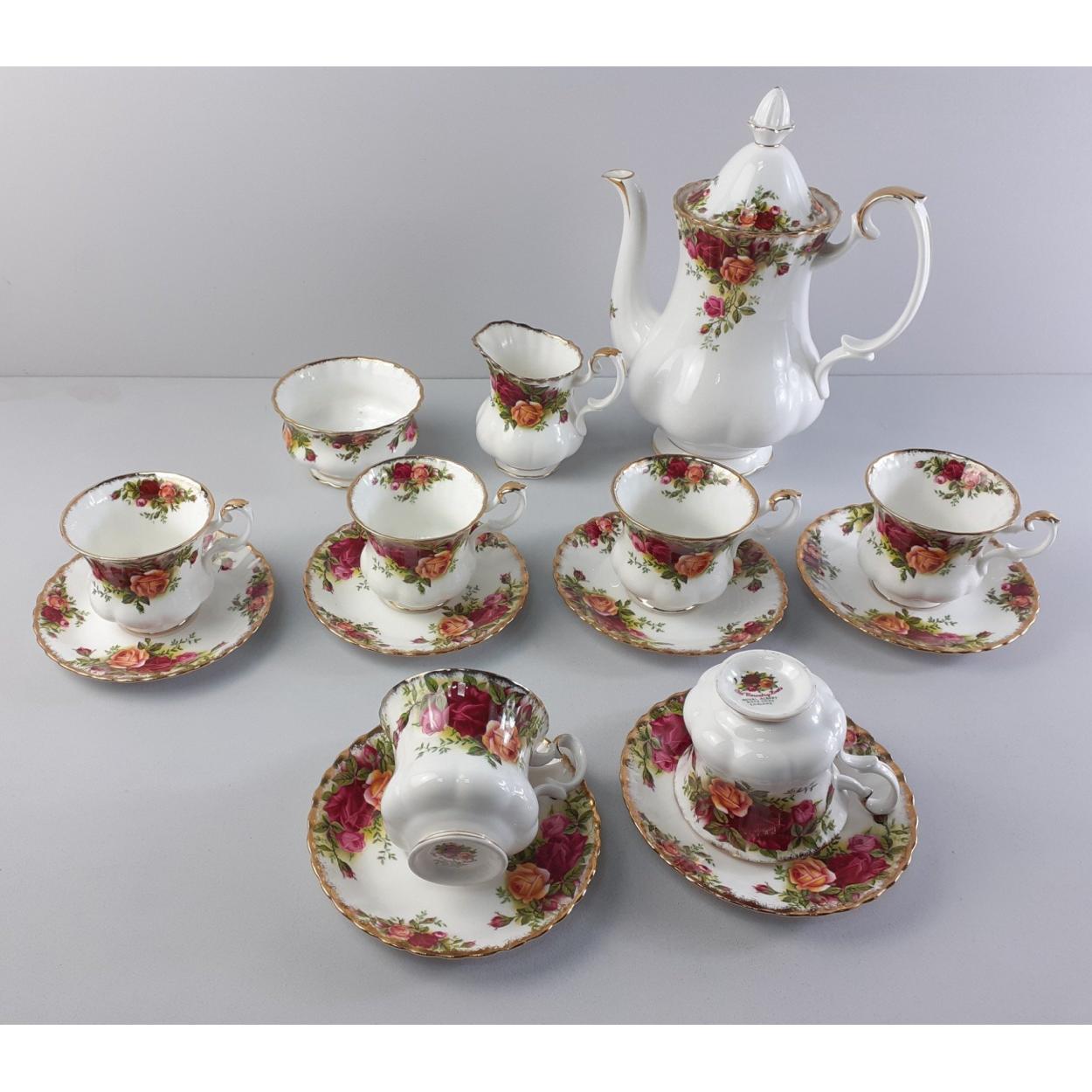 ROYAL ALBERT COUNTRY ROSES part coffee service comprising coffee pot, six cups and saucers, cream and sugar.