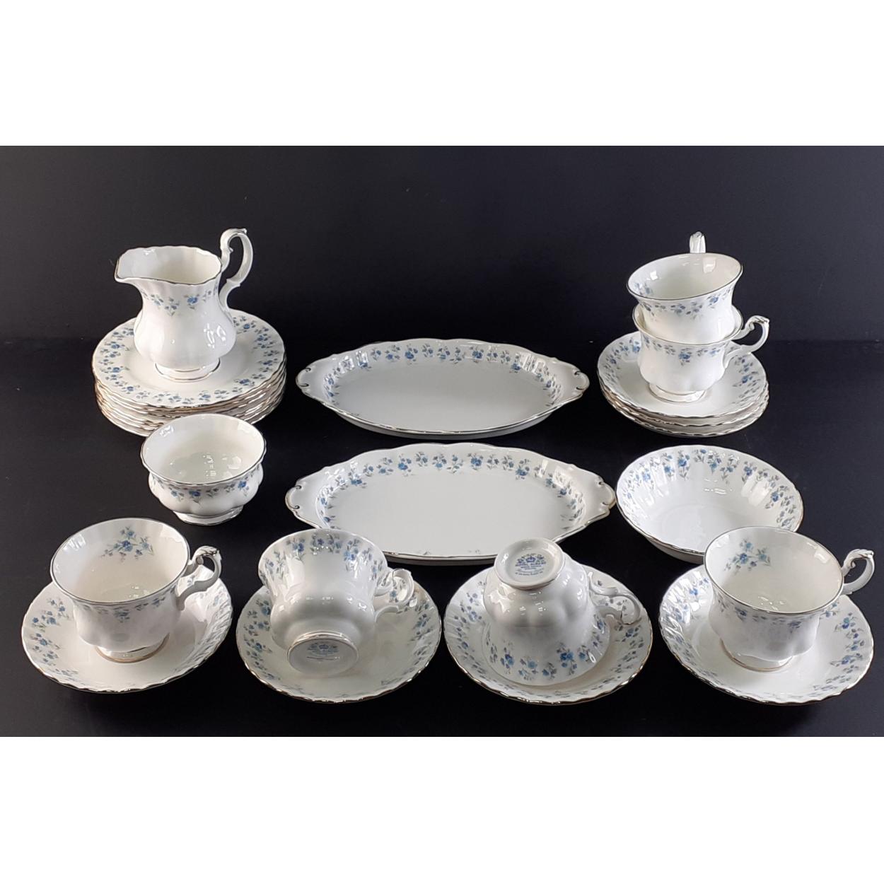 ROYAL ALBERT Memory Lane. Part service, including two sandwich plates, six each cups, saucers, side plates, sugar and cream.