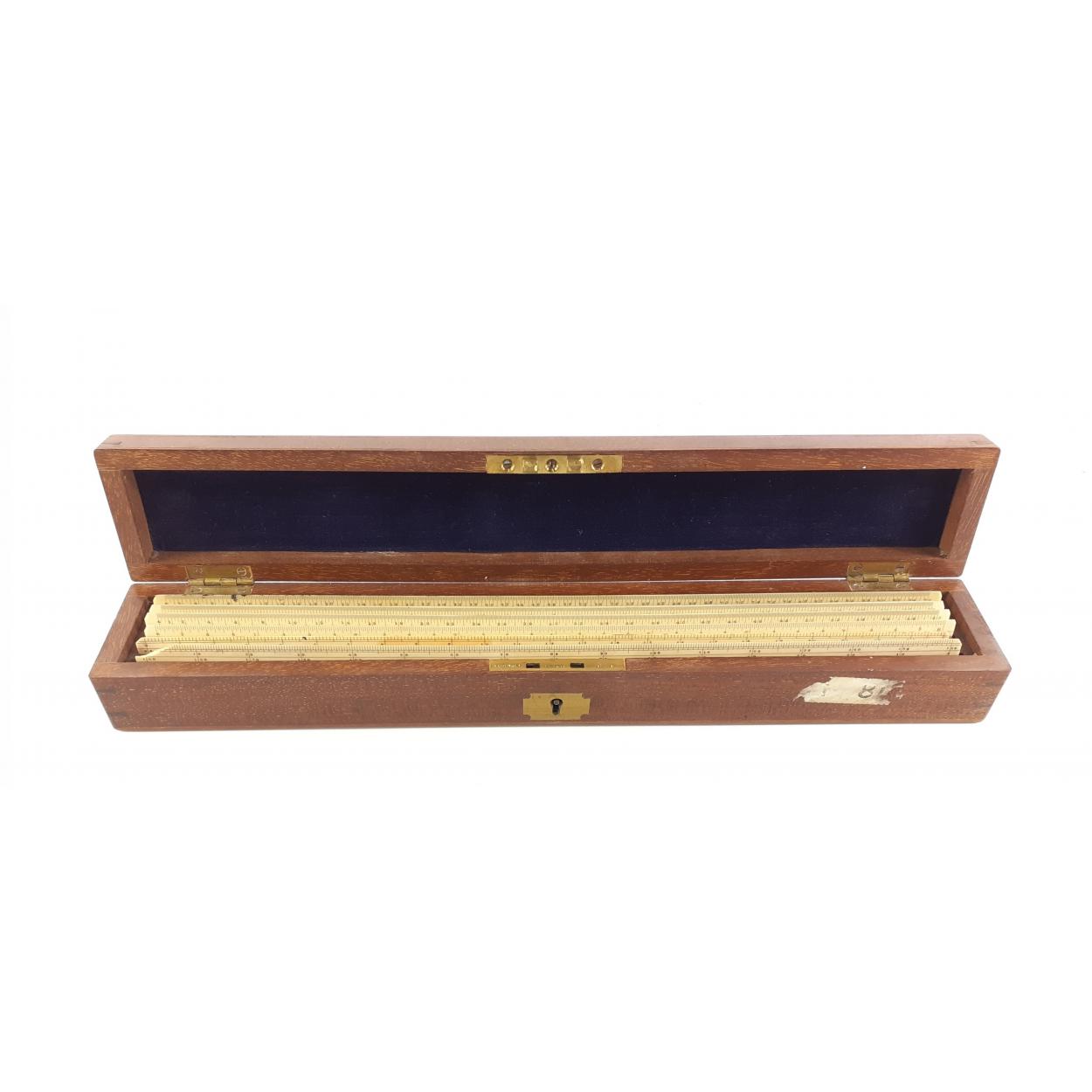 A lovely wooden box with a set of six rulers.