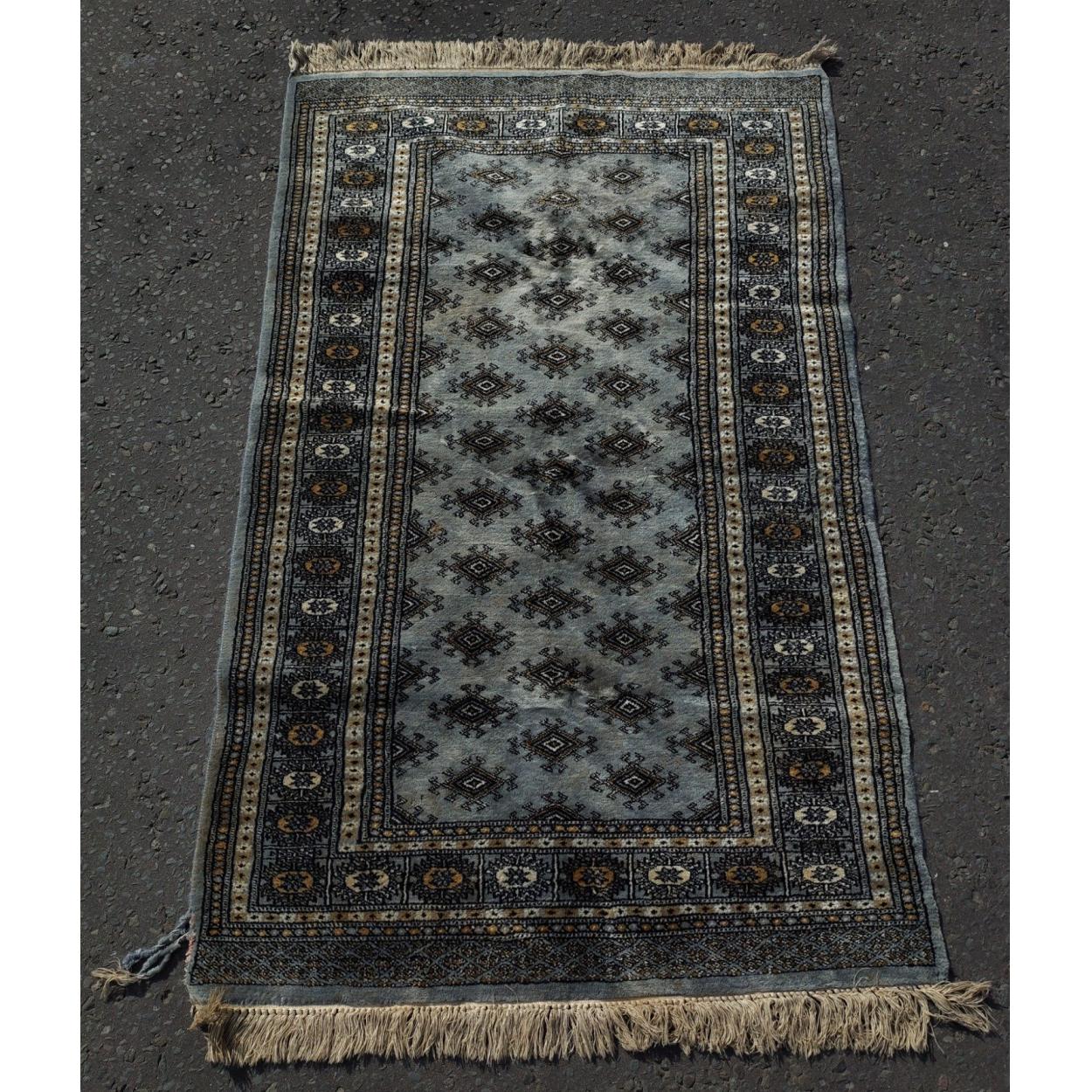 A Middle Eastern rug with attractive lozenge pattern, Size 146cm x 90cm approx. Minor wear noted to one edge but overall an attractive piece.