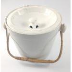From MAPLE & CO of Tottenham Court Road, London an antique slop pail with cane handle for removing waste water from bedrooms in the days before bathrooms, can be re-purposed as an ice bucket for modern living, some small cracks to the lid but does not detract from the item