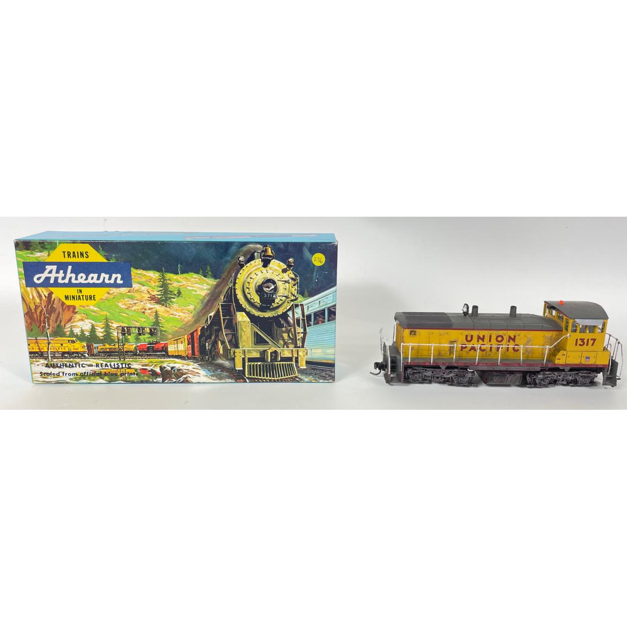 An ATHEARN HO DIESEL LOCOMOTIVE in box SW 1500 PWR Union Pacific 1317. This model has been nicely weathered for authenticity. From a large model railway layout and collection well cared for. Complete used but untested