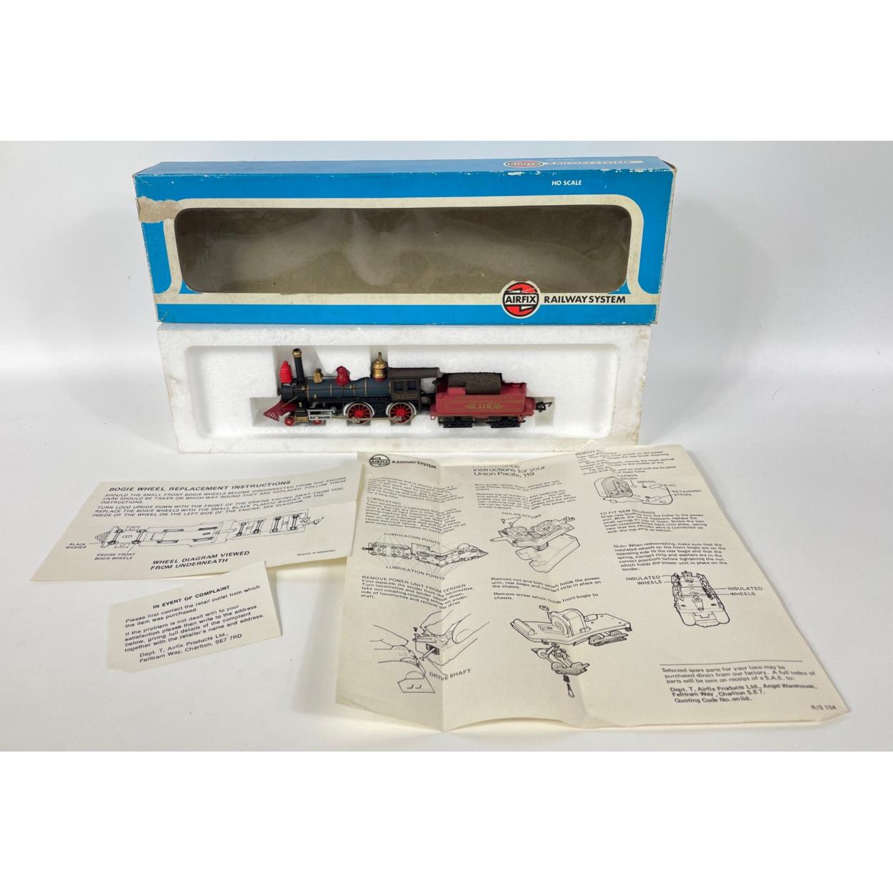 An AIRFIX HO Scale 54170-5 Central Pacific Railroad Jupiter 4-4-0 LOCOMOTIVE WITH TENDER. From a large model railway layout and collection well cared for. Complete used but untested.