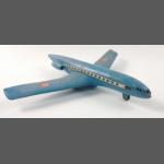 An old diecast tin toy plane with French military roundels, 29cm long, tail missing
