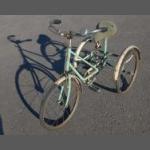Vintage green painted child's trike with 'Olympic Pentathlon Lightweight' sticker