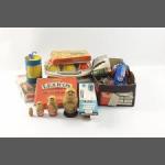 A box FULL of zoo(including clip zoo cages still boxed) and farmyard animals and vintage games to include WADDINGTON's WHAT, WADDINGTON's LEXICON, a Russian nesting doll, a set of play-boules, a CORGI Landrover 109", two Commer 3/4 tonne Chassis red and white ones, etc