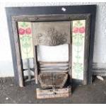 A repro VICTORIAN INSPIRED iron and tiled fireplace with grate and grate front - two tiles missing which can be easily replaced - dimensions 97cm wide x 98cm height approx