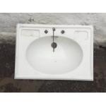 A BARN FIND - an early 20th century moulded ceramic bathroom sink 67Wx48Dx23H cm with original sink hole plug on a chain