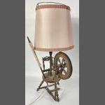A Sleeping Beauty table lamp, a really unusual miniature wooden spinning wheel standing approx 40cm plus shade (which needs some TLC)
