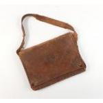 A vintage 1930s leather handbag with tooled fleur-de-lys decoration 27x20cm, hand-stitching needs some repair