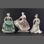 ROYAl DOULTON 'Polly' figurine, also Royal Doulton 'Sara' and also ladies of fashion COALPORT figurine height 22cm approx