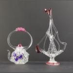 VENETIAN MURANO ornamental glass handblown galleon with also a pierced glass decorative teapot
