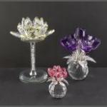 MOTHER'S DAY GIFTING IDEA! - SWAROVSKI style crystal glass purple rose bouquet on a crystal ball base - dimension 13cm with also a LOTUS crystal flower and lastly a smaller bouquet of red tulips on a crystal ball