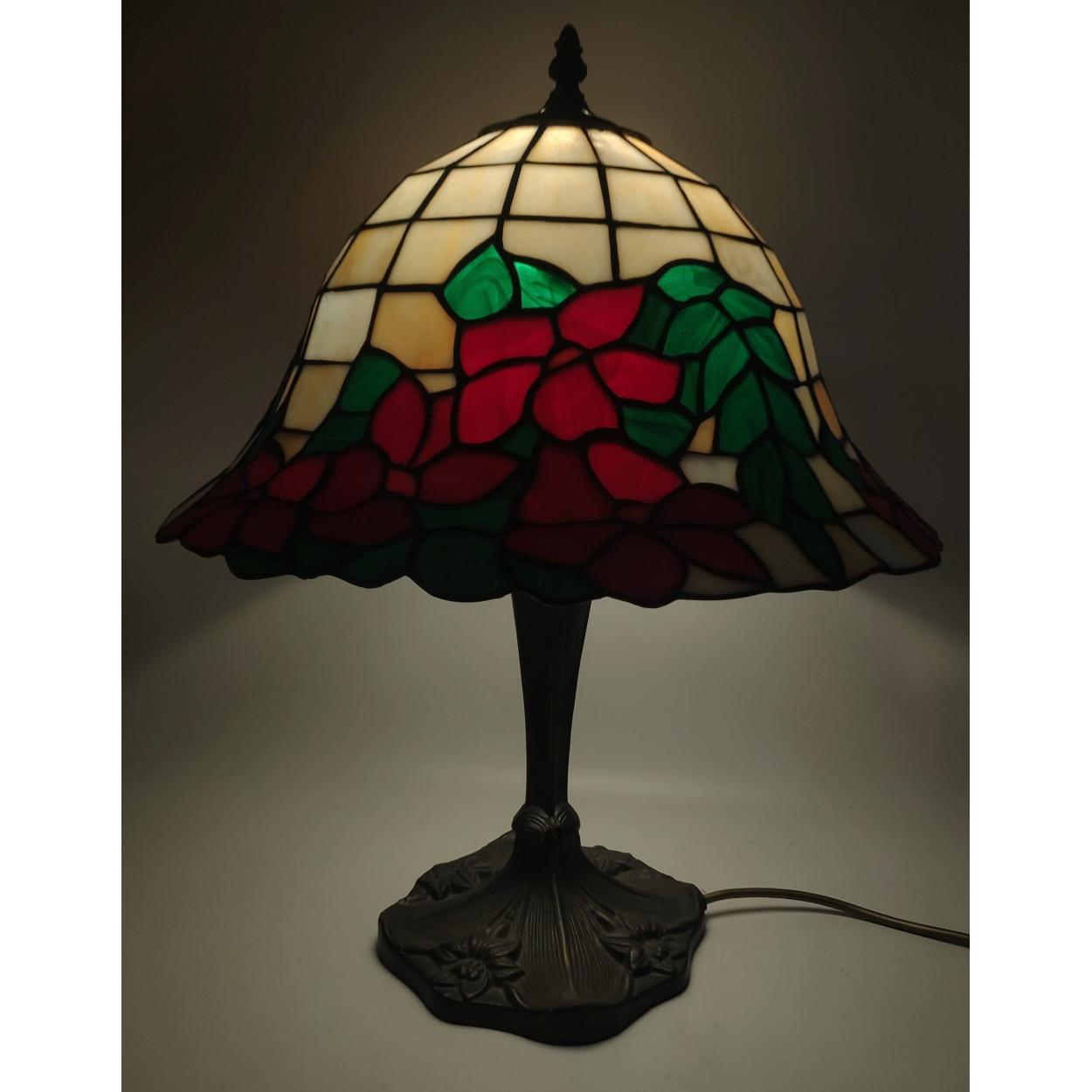 Modern TIFFANY style table lamp with floral bell shaped design to shade. Stands 50cm approx and in nice clean condition.