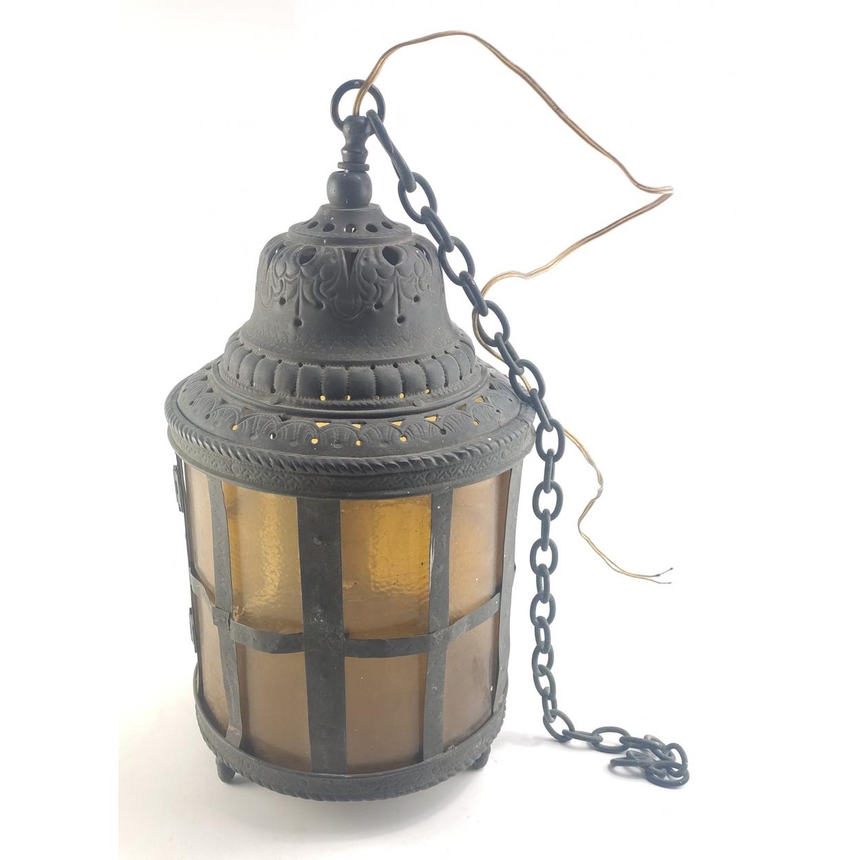 Vintage ceiling pendant lamp with amber shade glass which in in good condition. Shade measures 40cm approx.