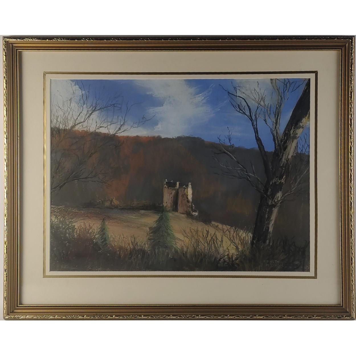 KENNETH MCOWAN Local Artist depiction of NEIDPATH CASTLE. Attractive pastel, nicely framed. 65cm x 55cm