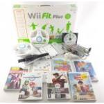 A NINTENDO WII with controllers and WII Fit Board with WII Play, Mariokart, Monster 4x4, Tiger Woods Golf, Chicken Little
