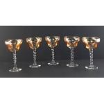 EXQUISITE set of five Italian smoky-lustre twisted stem glasses - beautiful quality! - diameter 8cm and height 15cm approx