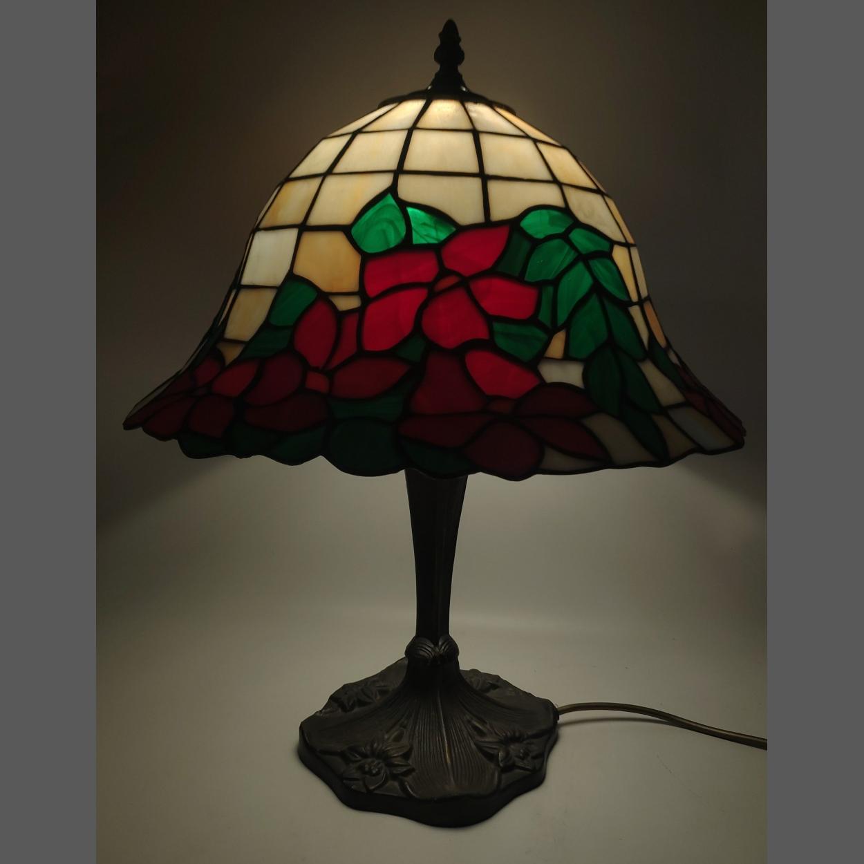 Modern TIFFANY style table lamp with floral bell shaped design to shade. Stands 50cm approx and in nice clean condition.