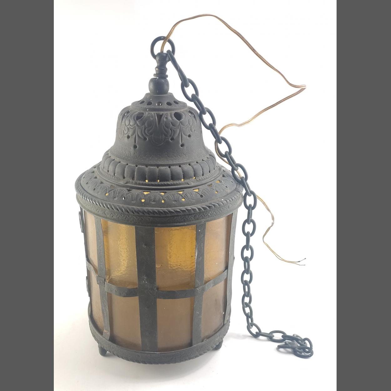 Vintage ceiling pendant lamp with amber shade glass which in in good condition. Shade measures 40cm approx.