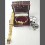 Gents watches x 3. ROTARY Quartz in box, SEIKO quartz square face and a modern Poedegar. Batteries may be required.