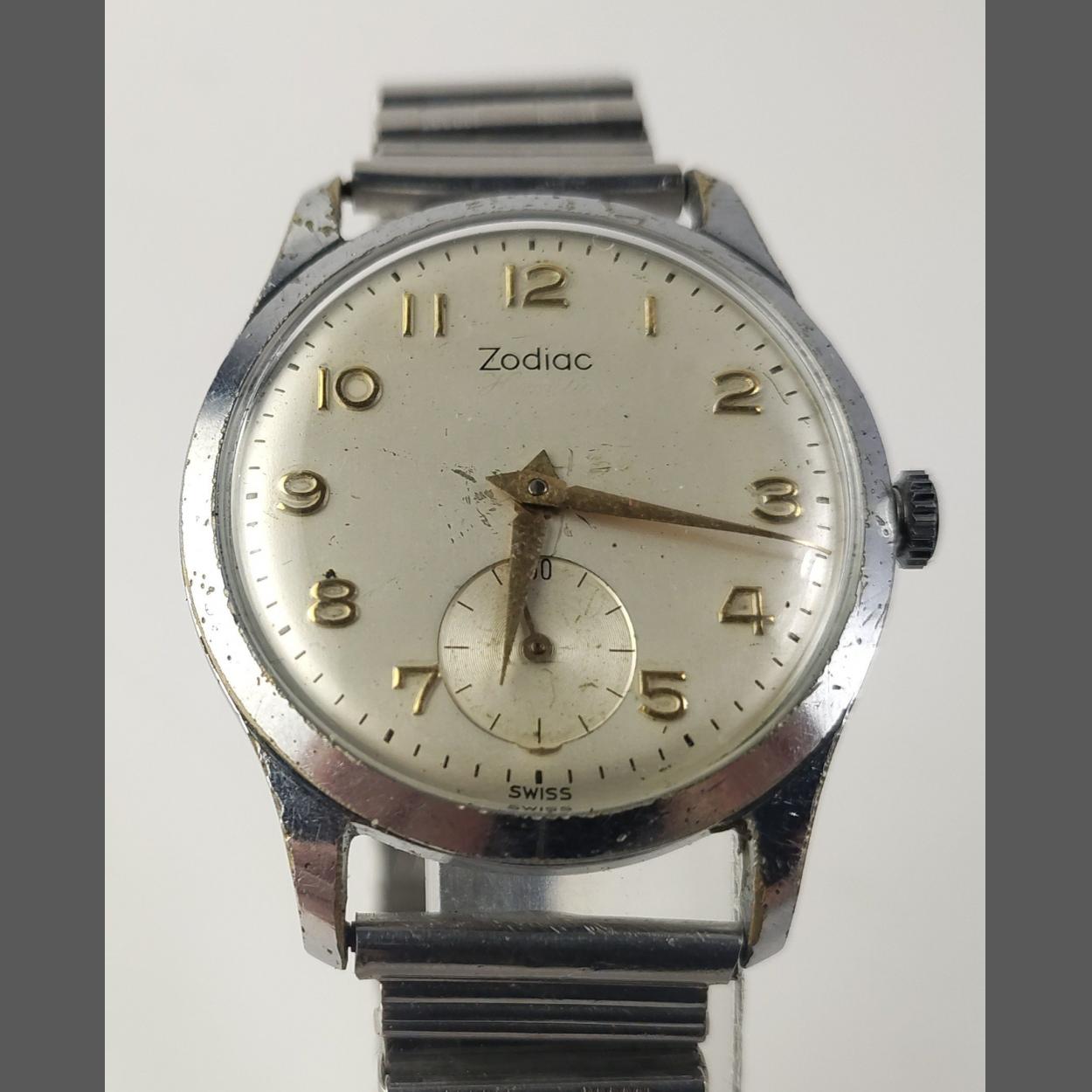 A vintage gents steel case ZODIAC automatic watch with 1955 Local Innerleithen St Ronans inscription. Service receipt from 2009. The watch is working well at valuation. A lovely classic piece.