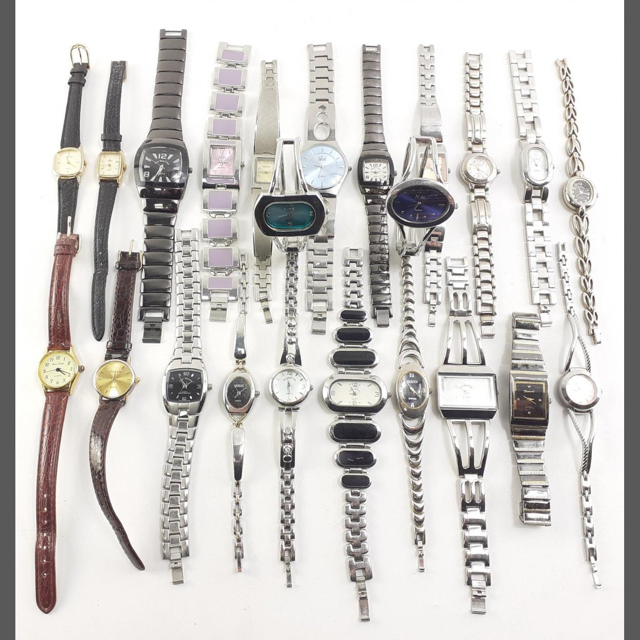 A collection of over twenty ladies modern dress watches. A few GUCCI noted. Batteries will be required. A good lot !
