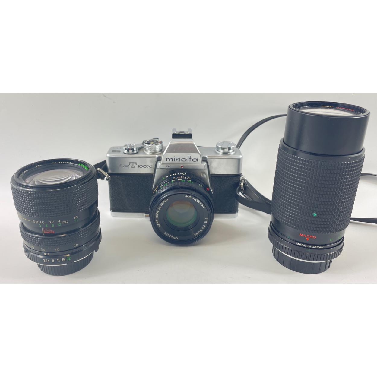 A MINOLTA SRT100X 35mm camera, with an KOBORON 70mm lens, also a SUPER OZECK ll auto zoom lens